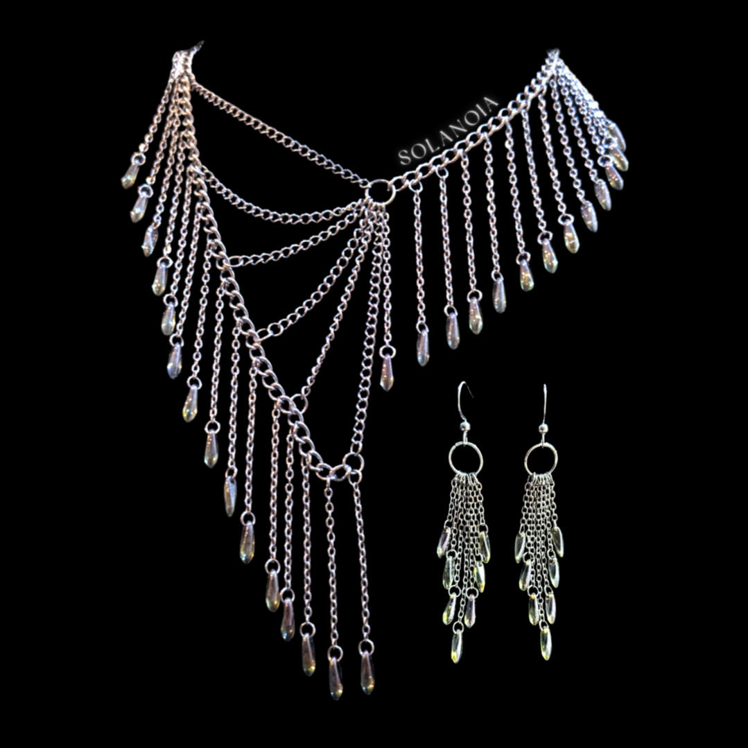 SOLD OUTStunning and elegant, this chandelier necklace & earrings set drops jaws.・゚⭒ View more angles of MOSSY on my instagram @solanoia ・゚⭒